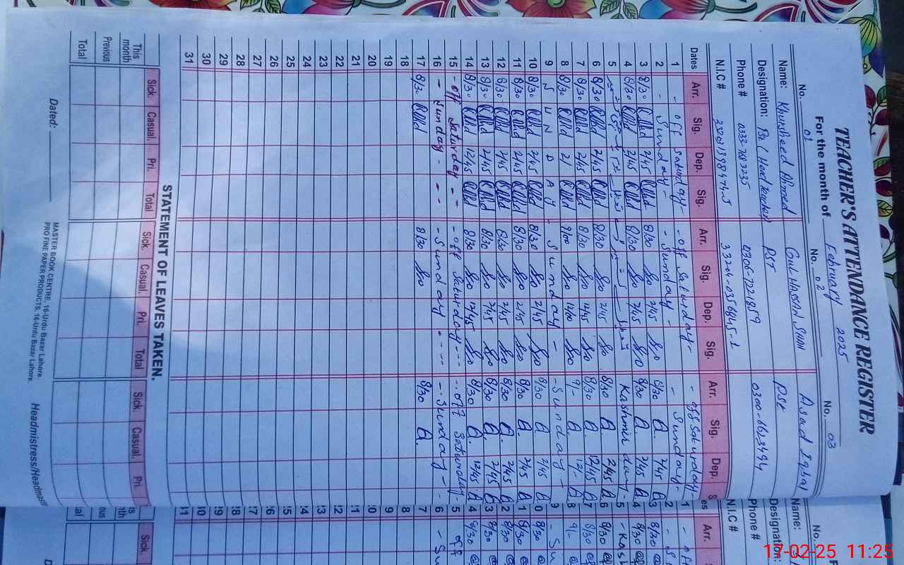 | Name: KH**** Designation: (School Headmaster's/Headmistress's) PST Phone/Cell Number: 03**** |