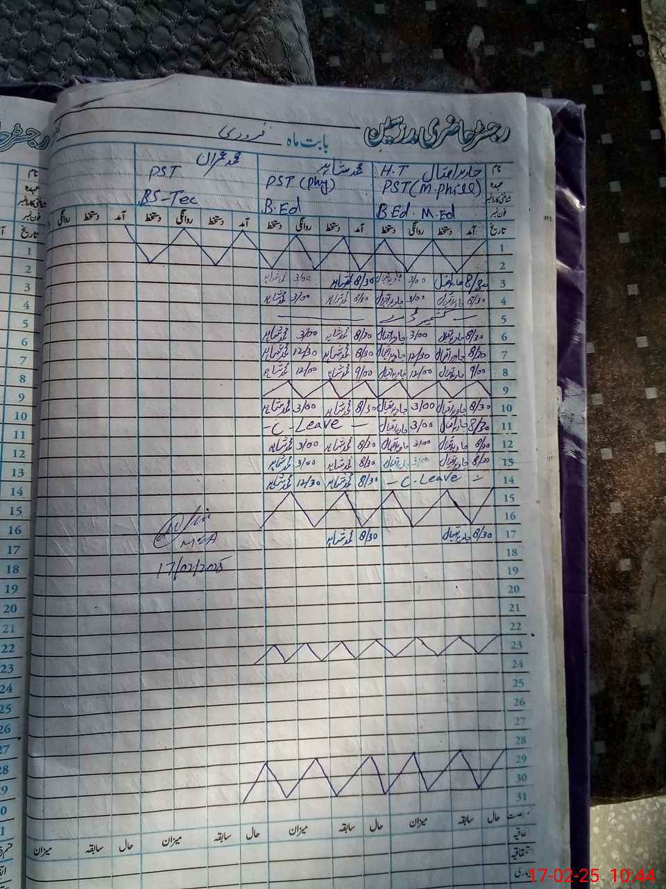 | CNIC | Full Name | Designation | R/C | Absence During Last Calender Month |