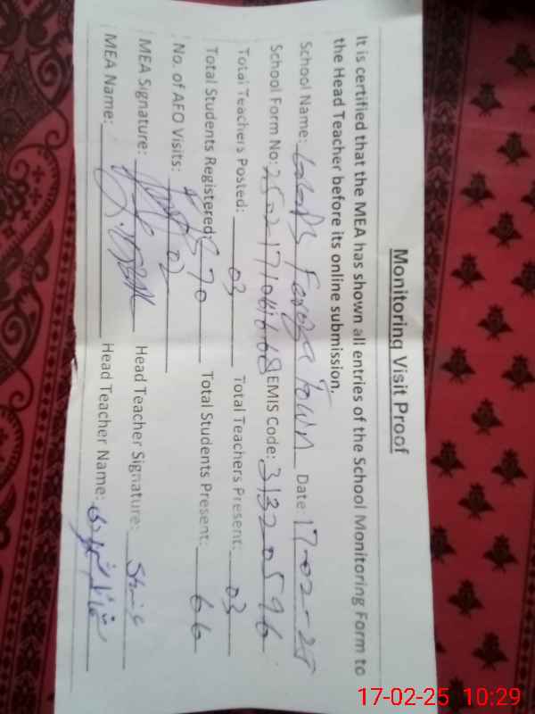 | EMIS Code: 31320596 | Name of School: GGPS FEROZA TOWN | |||