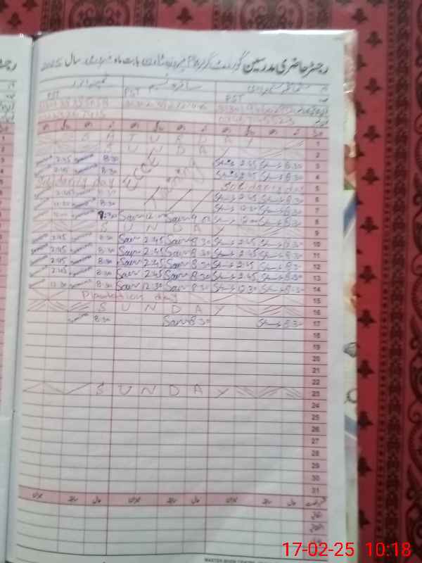 | CNIC | Full Name | Designation | R/C | Absence During Last Calender Month |