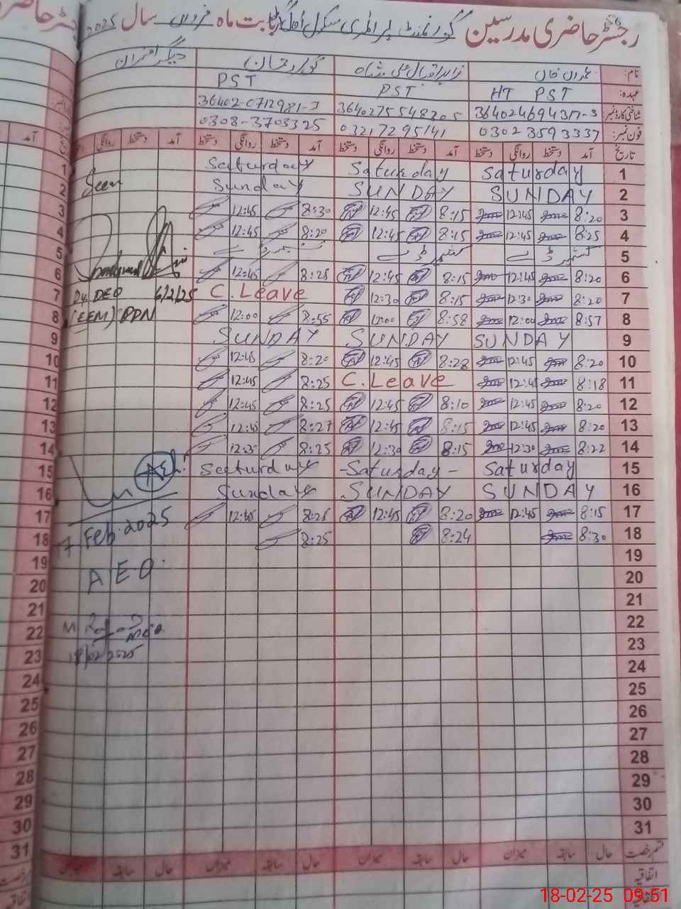 | Name: Im**** Kh**** Designation: (School Headmaster's/Headmistress's) PST Phone/Cell Number: 03**** |