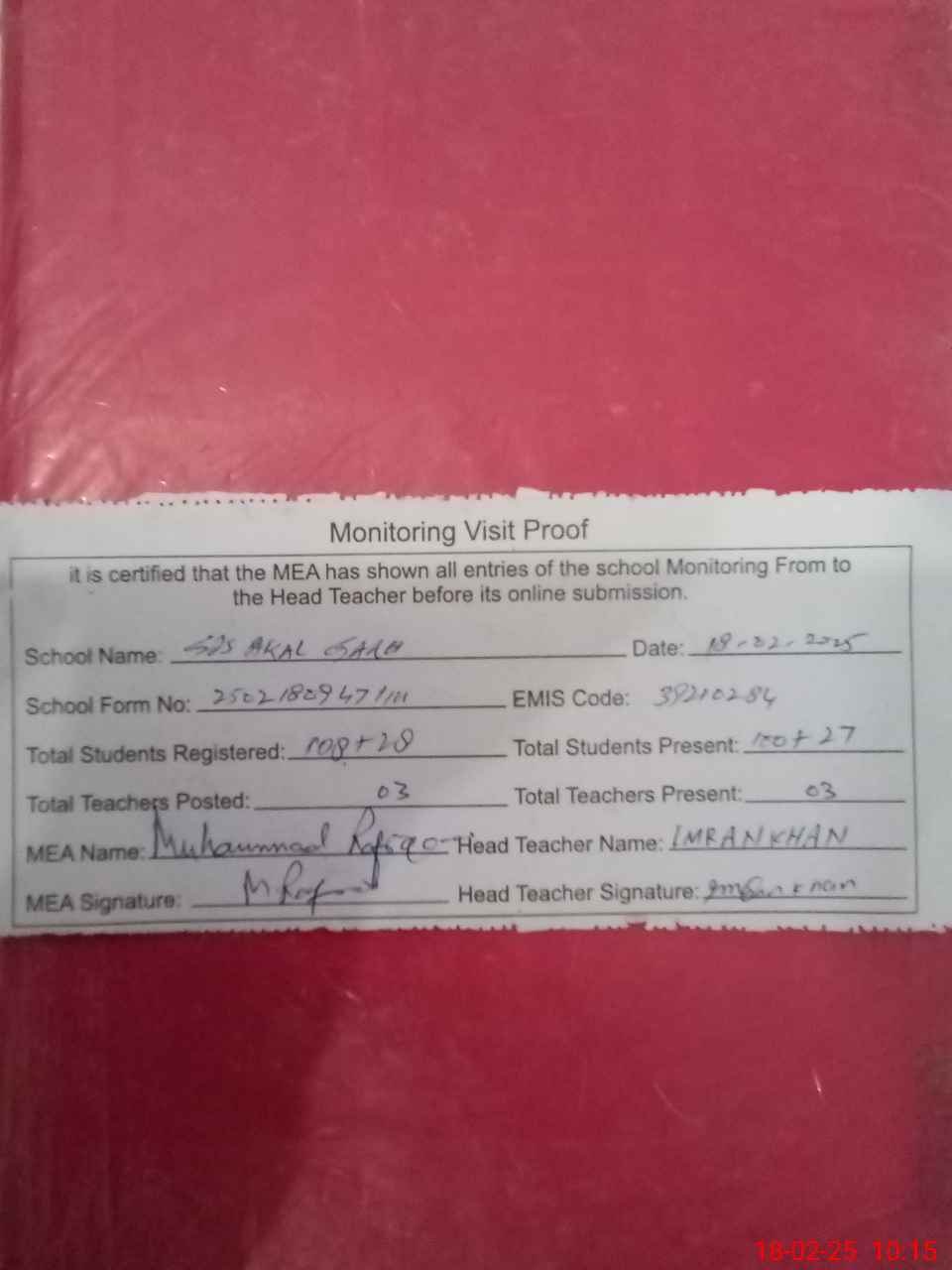 | EMIS Code: 39210284 | Name of School: GPS AKAL GARH P.O KARTAR PUR | |||