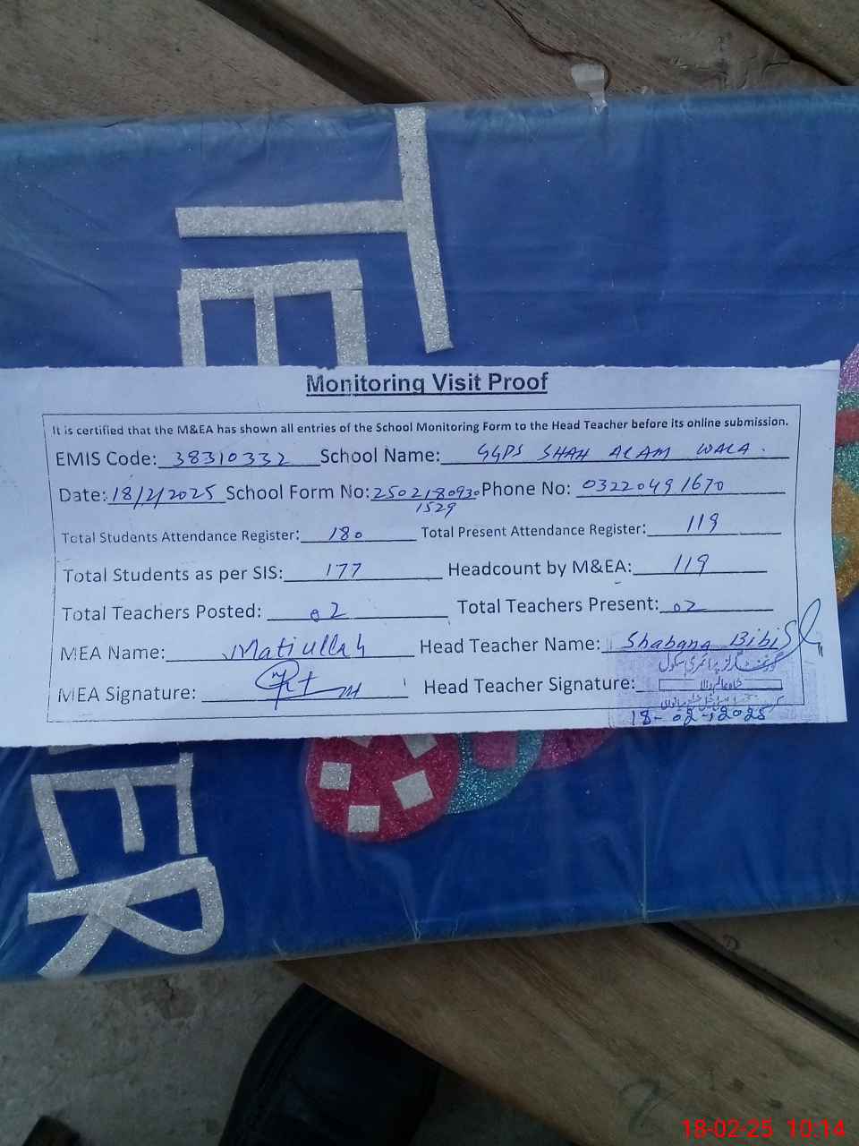 | EMIS Code: 38310332 | Name of School: GGPS SHAH ALAM WALA | |||