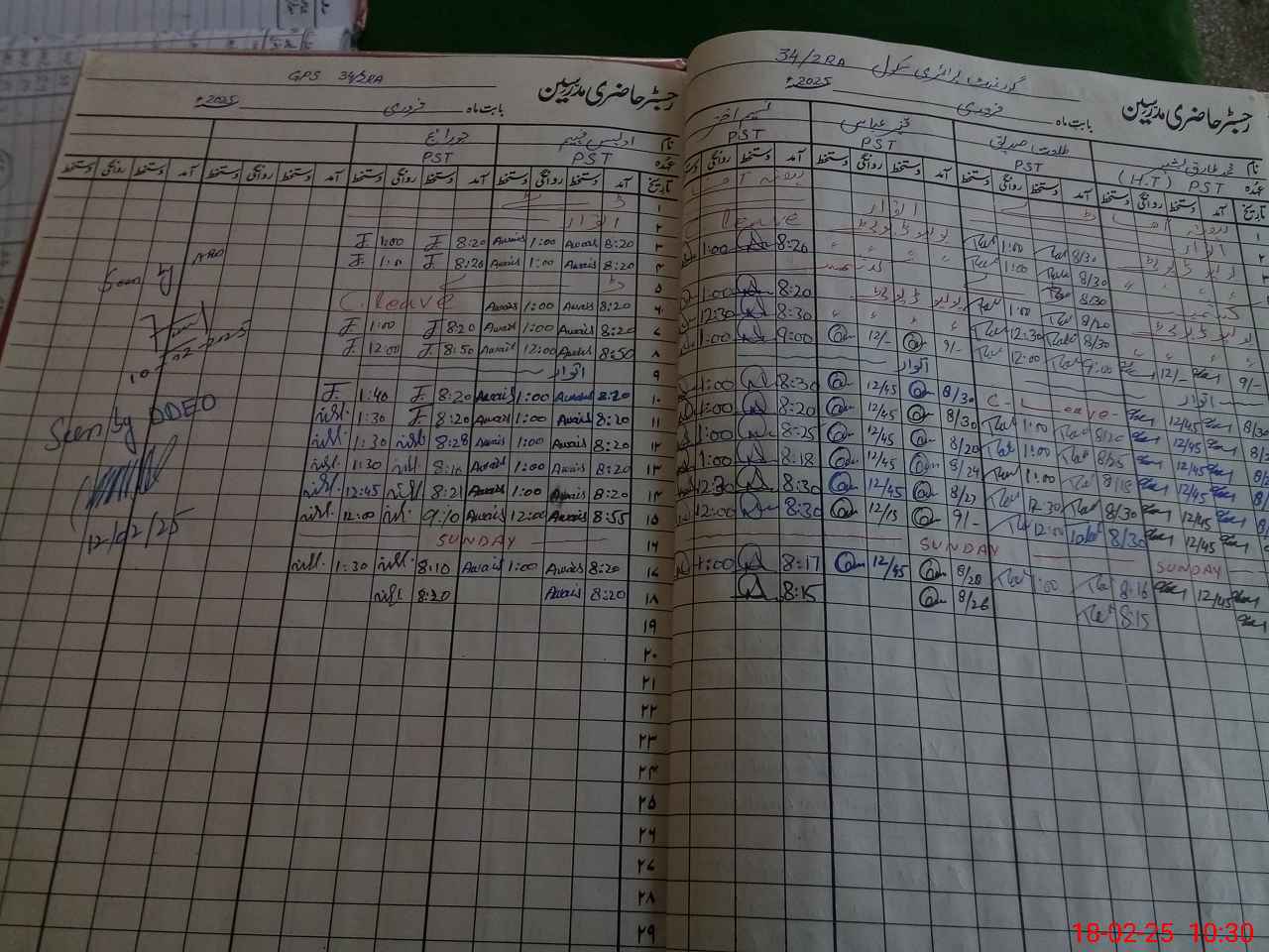 | CNIC | Full Name | Designation | R/C | Absence During Last Calender Month |