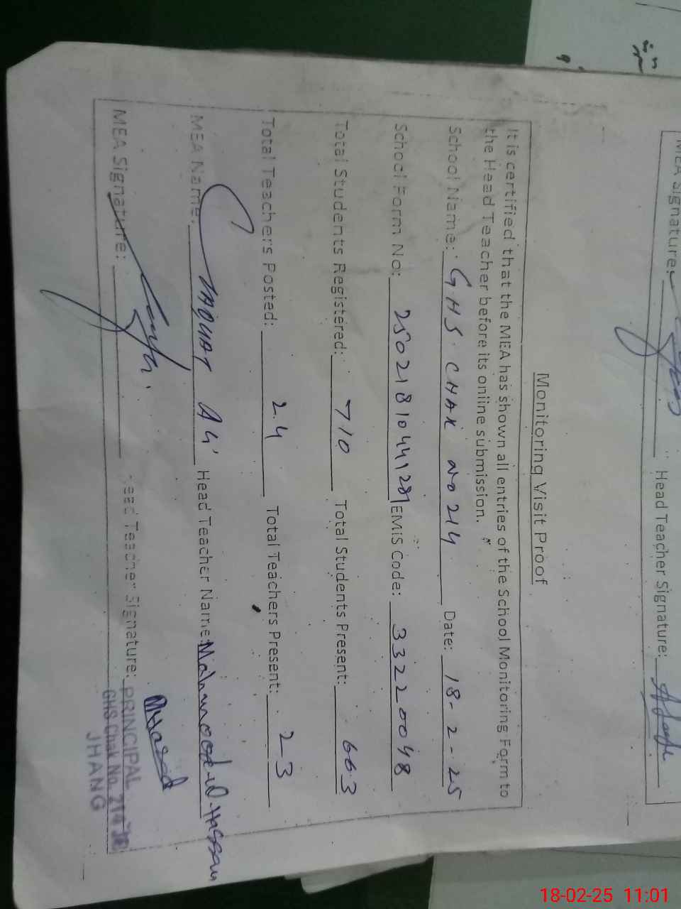 | EMIS Code: 33220048 | Name of School: GHS CHAK NO 214/ JB | |||