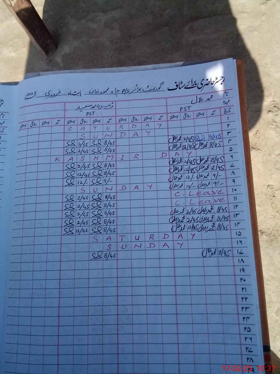 | CNIC | Full Name | Designation | R/C | Absence During Last Calender Month |