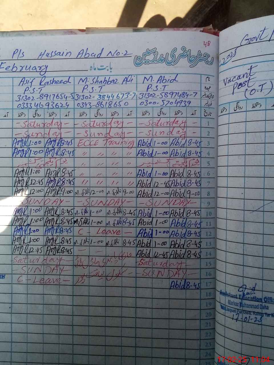 | Name: MU**** AB**** Designation: (School Headmaster's/Headmistress's) PST Phone/Cell Number: 03**** |