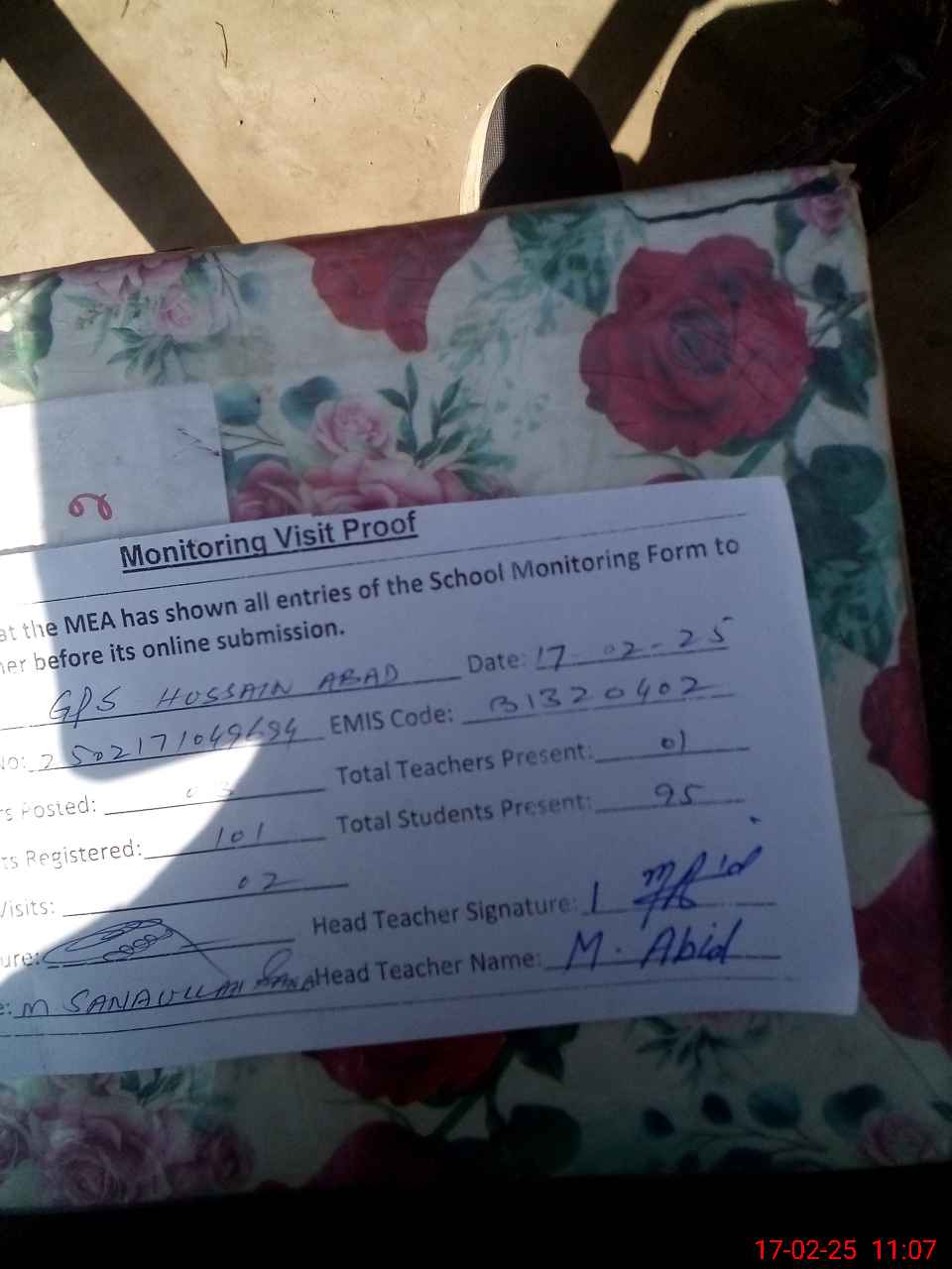 | EMIS Code: 31320402 | Name of School: GPS HUSSAIN ABAD NO.2 | |||
