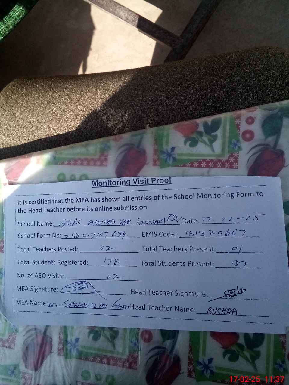 | EMIS Code: 31320667 | Name of School: GGPS AHMED YAR TANWARI QADEEM | |||