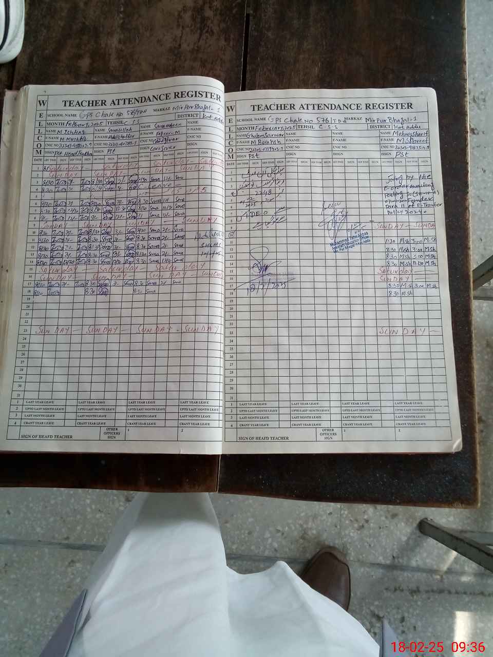 | CNIC | Full Name | Designation | R/C | Absence during last cal. month |