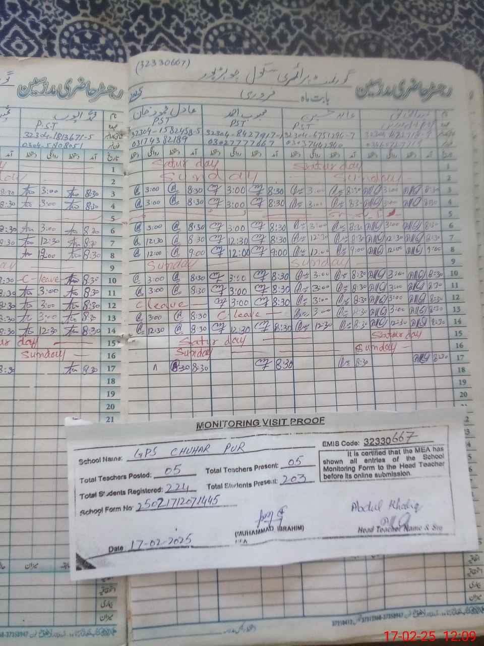 | EMIS Code: 32330667 | Name of School: GPS CHOHAR PUR | |||