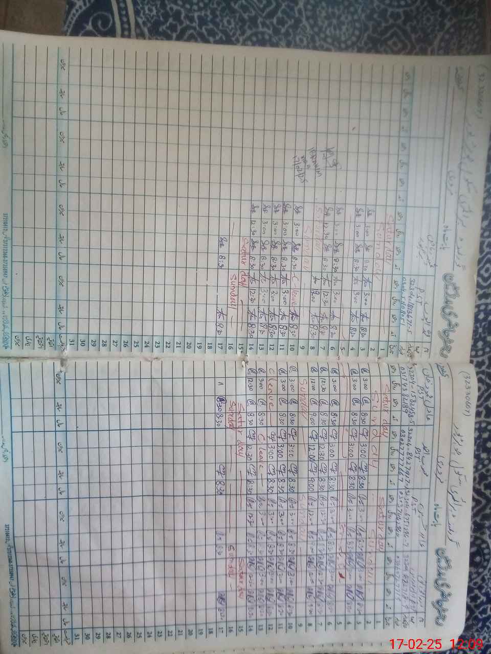 | CNIC | Full Name | Designation | R/C | Absence During Last Calender Month |
