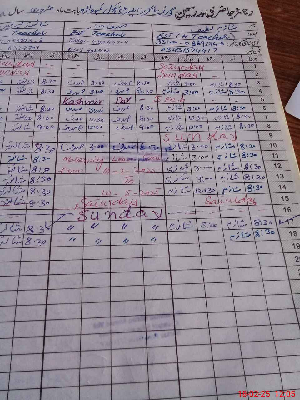 | Name: SH**** LA**** Designation: (School Headmaster's/Headmistress's) PST Phone/Cell Number: 03**** |