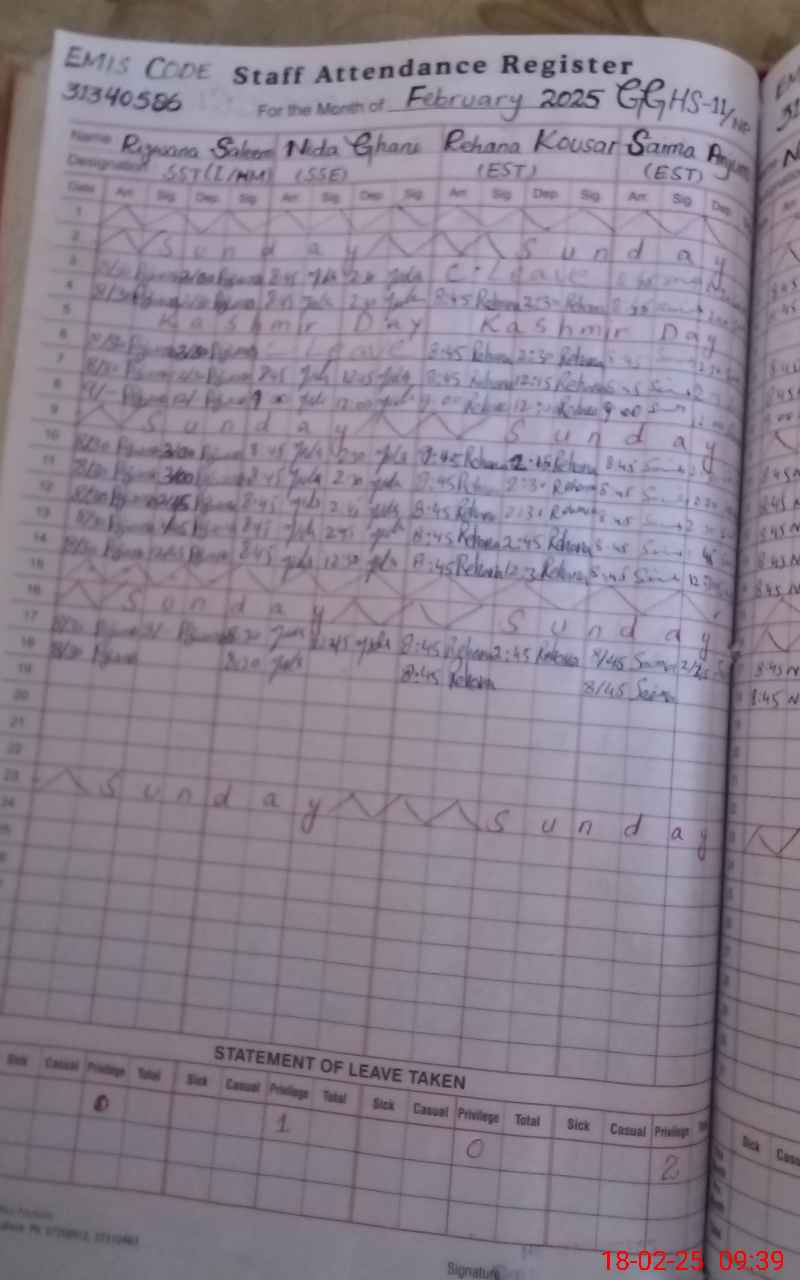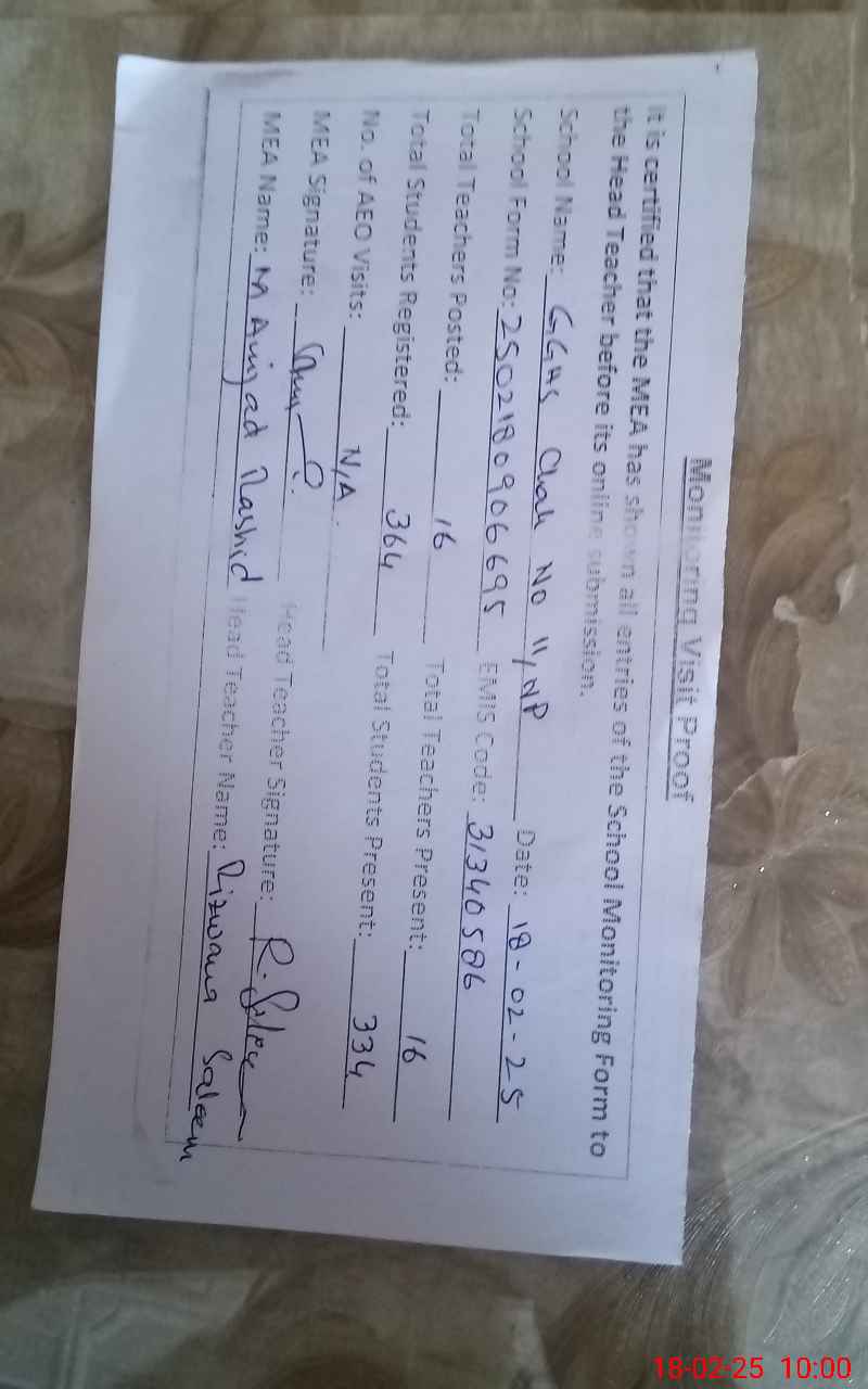 | EMIS Code: 31340586 | Name of School: GGHS CHAK NO. 11/NP | |||
