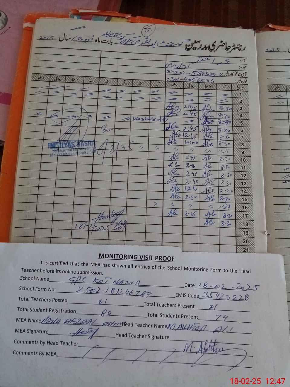 | EMIS Code: 35420228 | Name of School: GPS KOT NAZIR AHMAD | |||