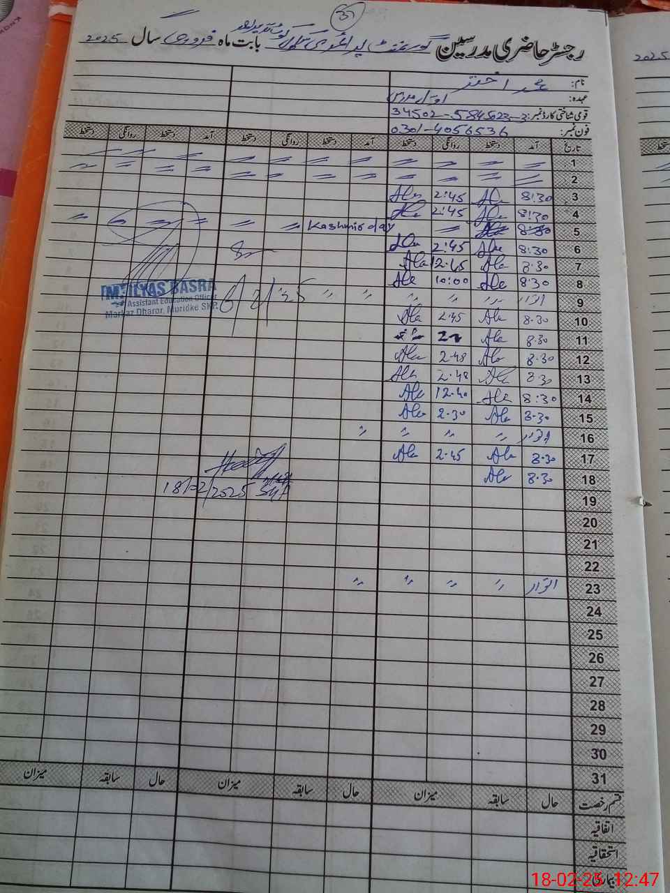 | Name: MU**** AK**** Designation: (School Headmaster's/Headmistress's) PST Phone/Cell Number: 03**** |