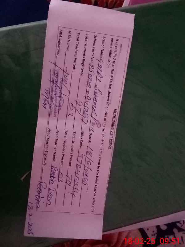 | Certified that this School was Inspected by the Undersigned MEA/DMO Today and the Information Stated Above is as Per Record. | |||||