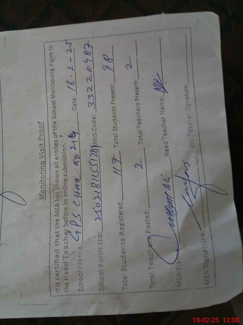 | EMIS Code: 33220487 | Name of School: GPS CHAK NO 214 ABADI JB GUJAR | |||
