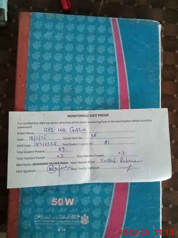| EMIS Code: 38410326 | Name of School: GPS CHAK NO.1 NB GAKHRA | |||