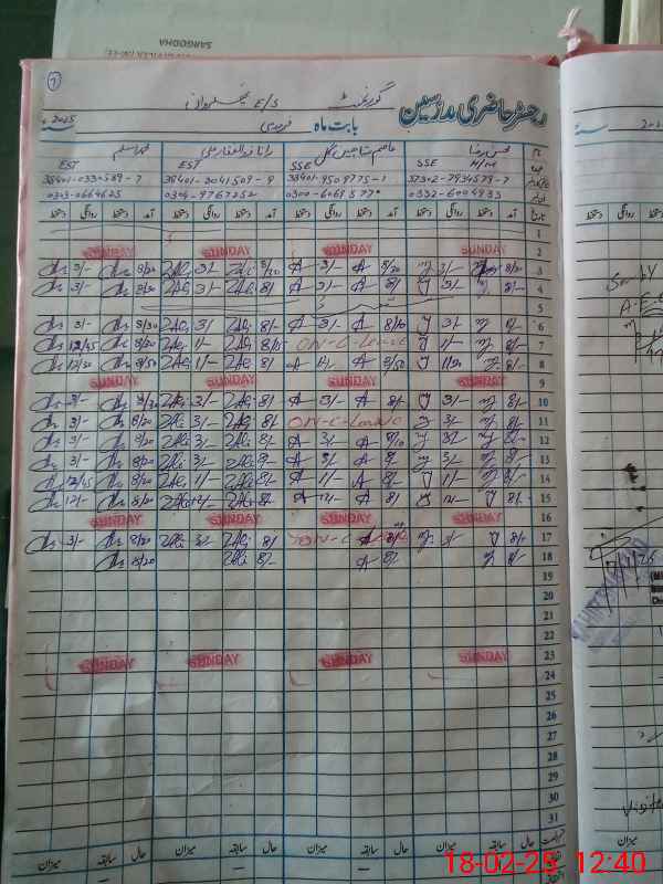 | CNIC | Full Name | Designation | R/C | Absence During Last Calender Month |