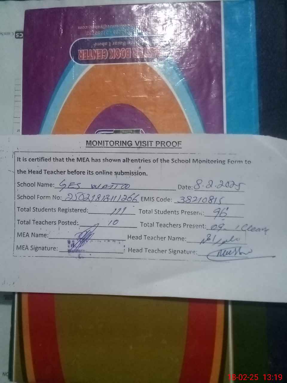 | EMIS Code: 38210815 | Name of School: GES WATOO | |||