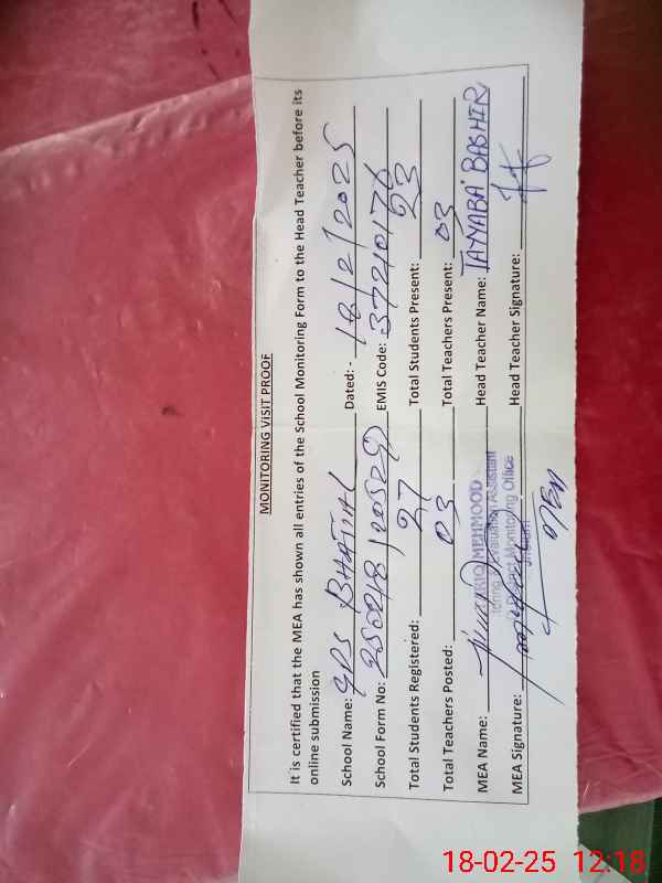 | EMIS Code: 37210176 | Name of School: GPS BHATIAL | |||