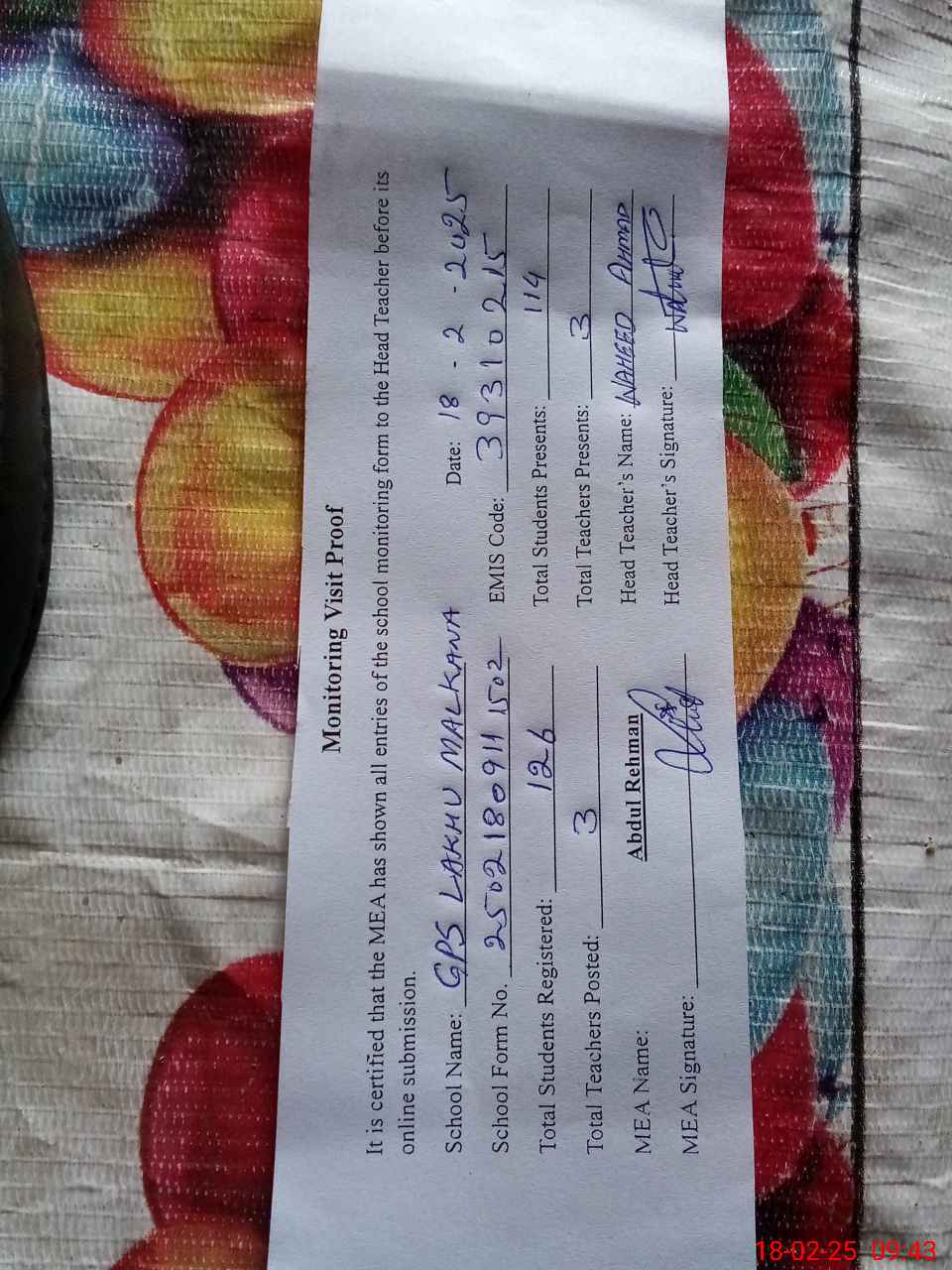 | EMIS Code: 39310215 | Name of School: GPS LAKHU MALKANA | |||