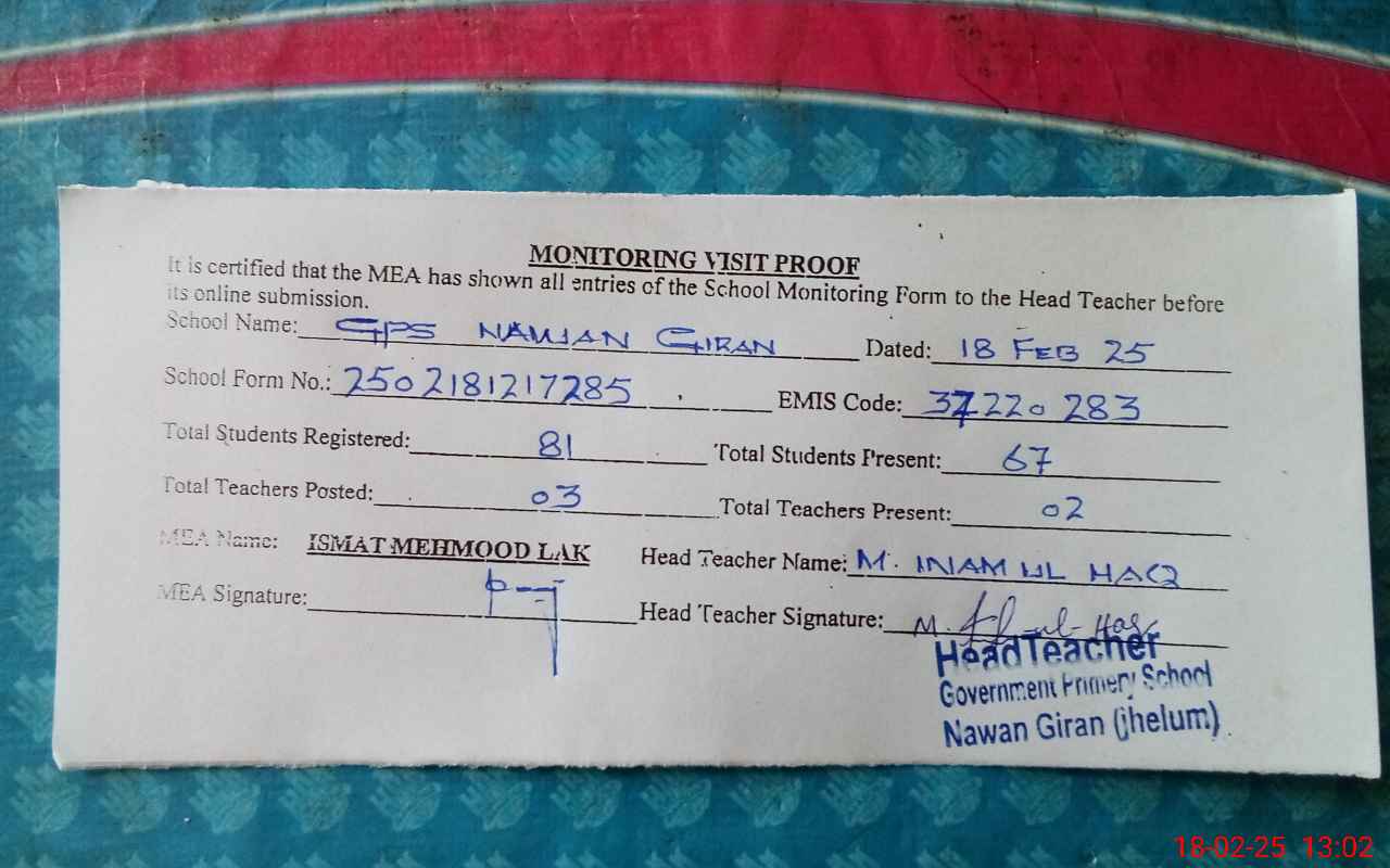 | EMIS Code: 37220283 | Name of School: GPS NAWAN GIRAN | |||