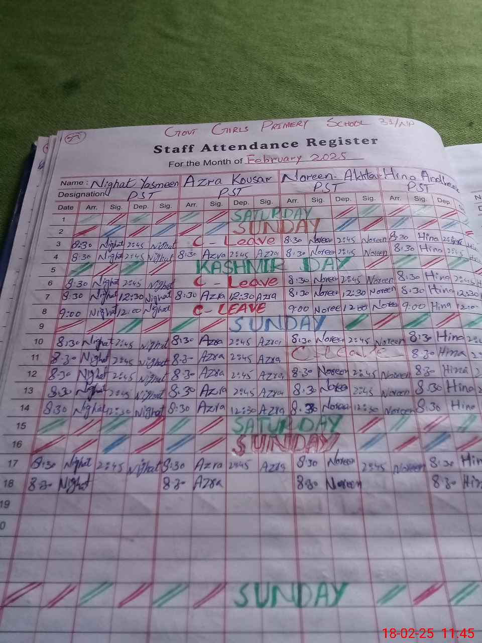 | CNIC | Full Name | Designation | R/C | Absence During Last Calender Month |