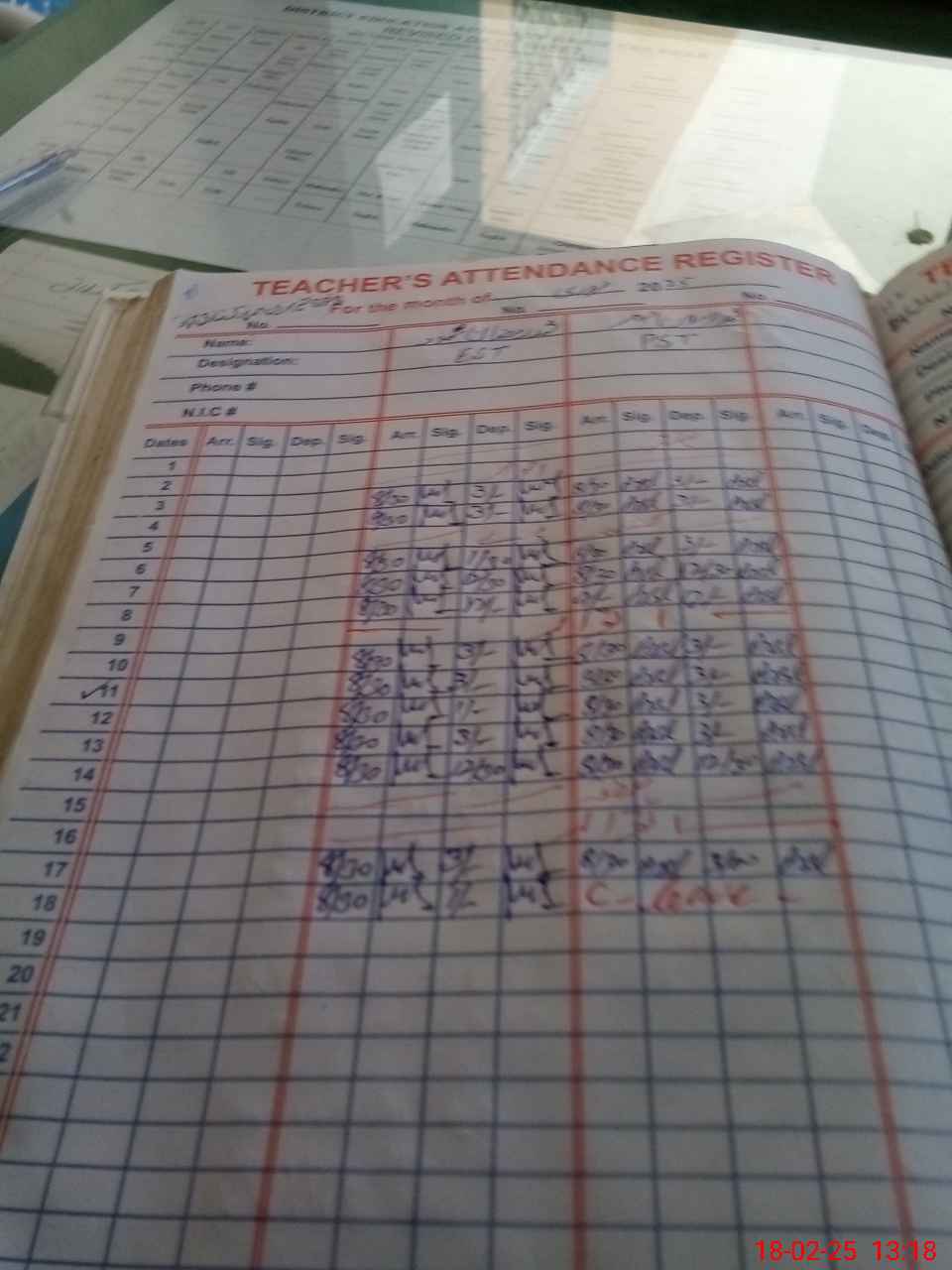 | CNIC | Full Name | Designation | R/C | Absence During Last Calender Month |