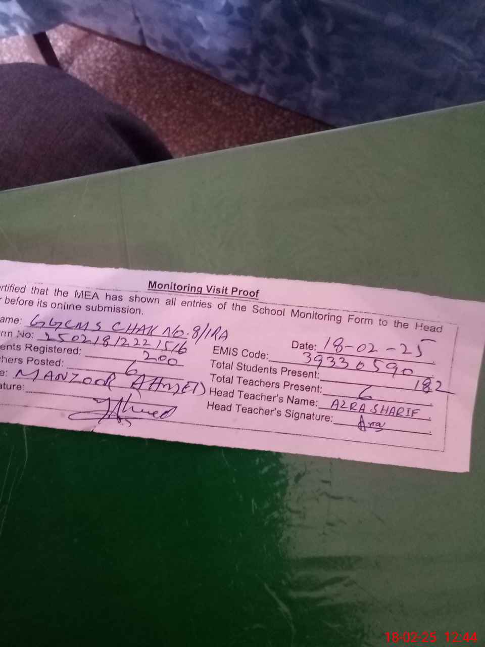 | EMIS Code: 39330590 | Name of School: GGCMS CHAK NO. 8/1-RA | |||