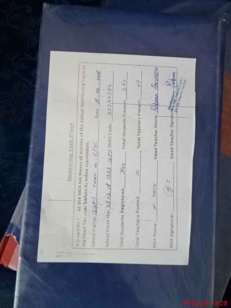 | EMIS Code: 33240384 | Name of School: GGES CHAK NO 6/3L SHUMALI | |||