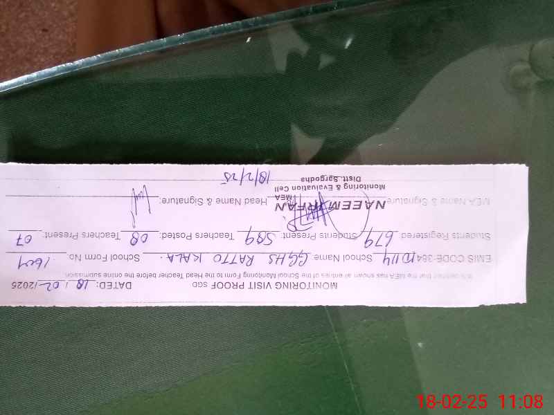 | Attendance Register | Head Teacher | MEA with School | Visit Proof |