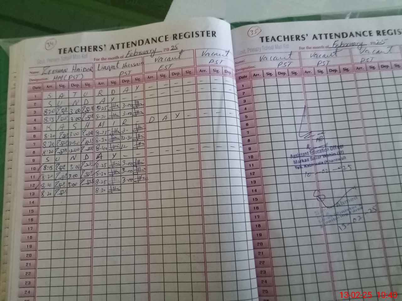 | Name: ZE**** HA**** Designation: (School Headmaster's/Headmistress's) Hd Phone/Cell Number: 03**** |