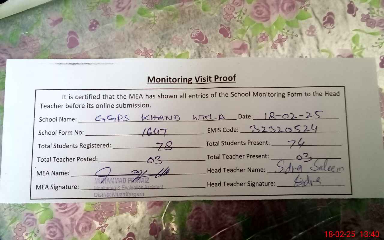 | EMIS Code: 32320524 | Name of School: GGPS KHAND WALA | |||