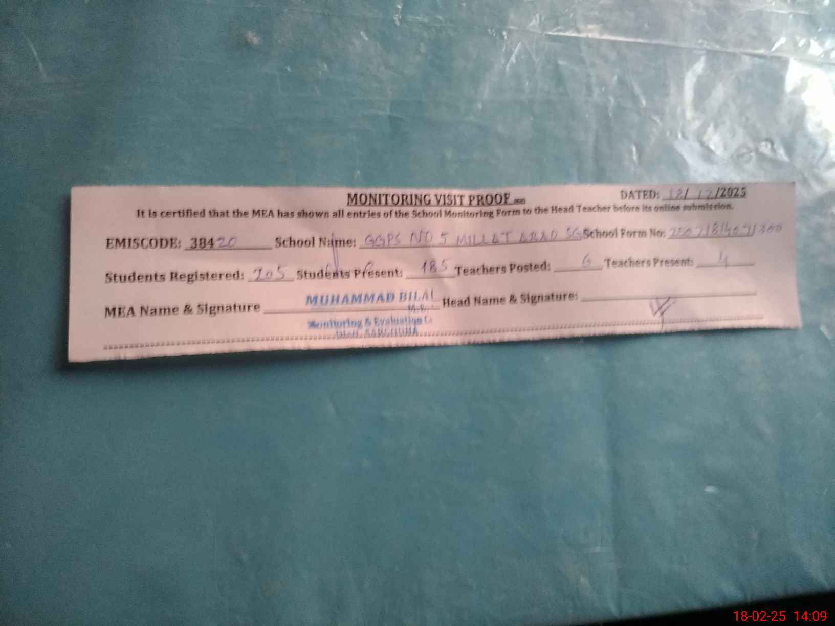 | EMIS Code: 38420665 | Name of School: GGPS MC MILLAT ABAD SARGODHA | |||