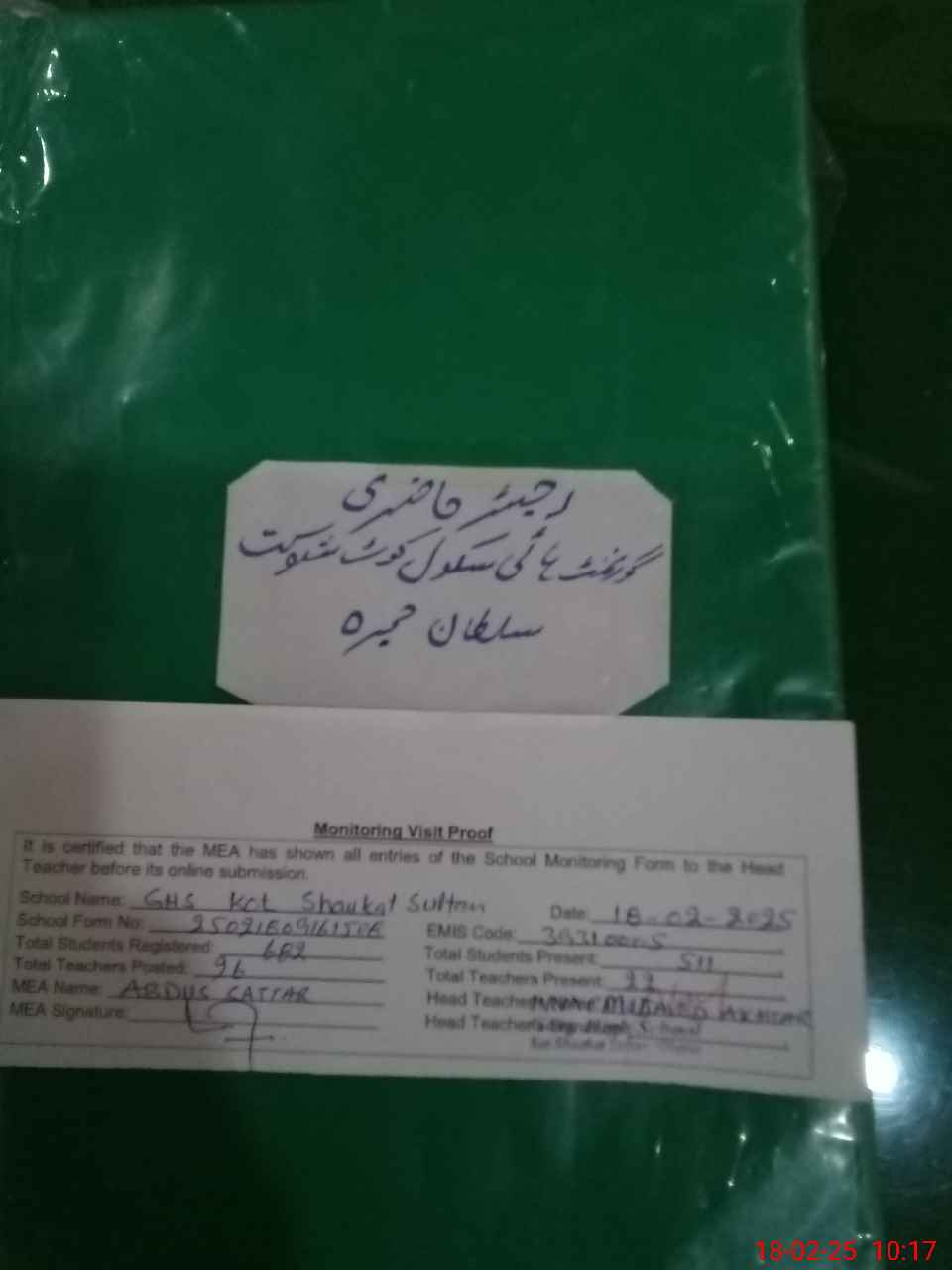 | Attendance Register | Head Teacher | MEA with School | Visit Proof |