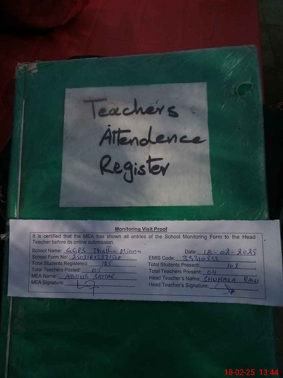 | EMIS Code: 39310533 | Name of School: GGPS THATHA MIANA | |||