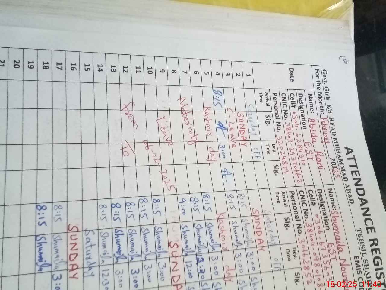 | Name: ME**** KA**** Designation: (School Headmaster's/Headmistress's) SSE (SCIENCE) Phone/Cell Number: 03**** |