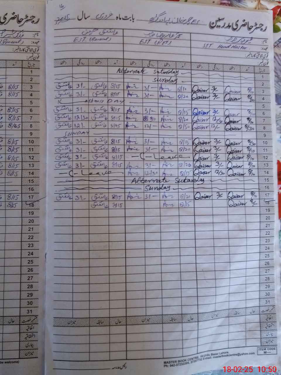 | Name: QA**** AB**** Designation: (School Headmaster's/Headmistress's) SST Phone/Cell Number: 03**** |