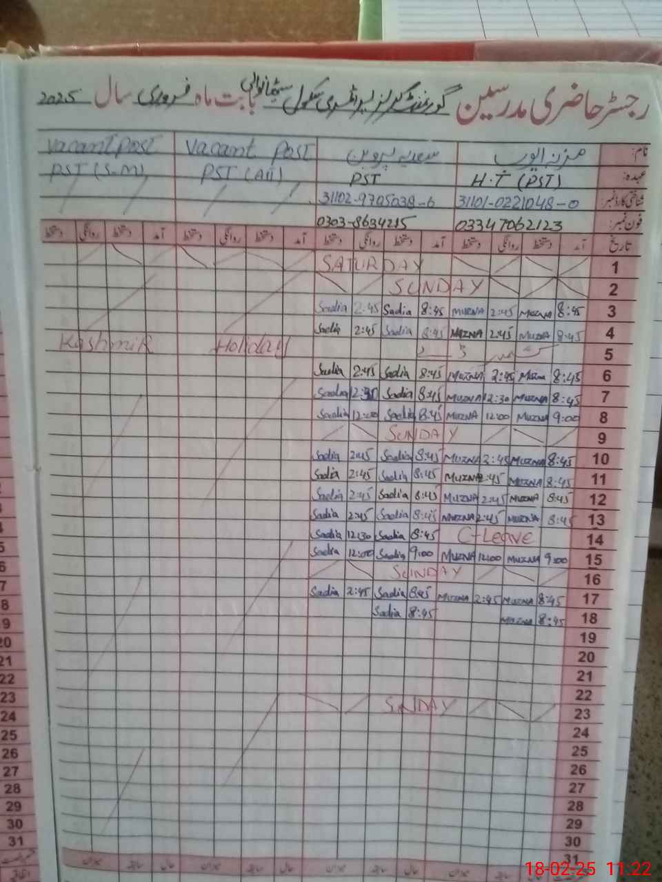 | Name: MU**** AY**** Designation: (School Headmaster's/Headmistress's) PST Phone/Cell Number: 03**** |