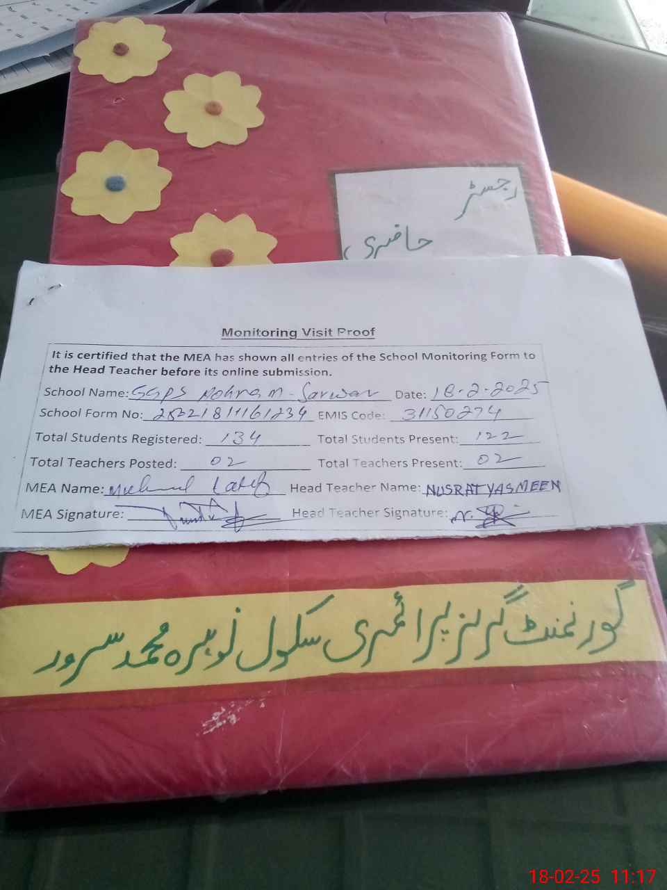 | EMIS Code: 31150274 | Name of School: GGPS NOHRA MUHAMMAD SARWAR | |||