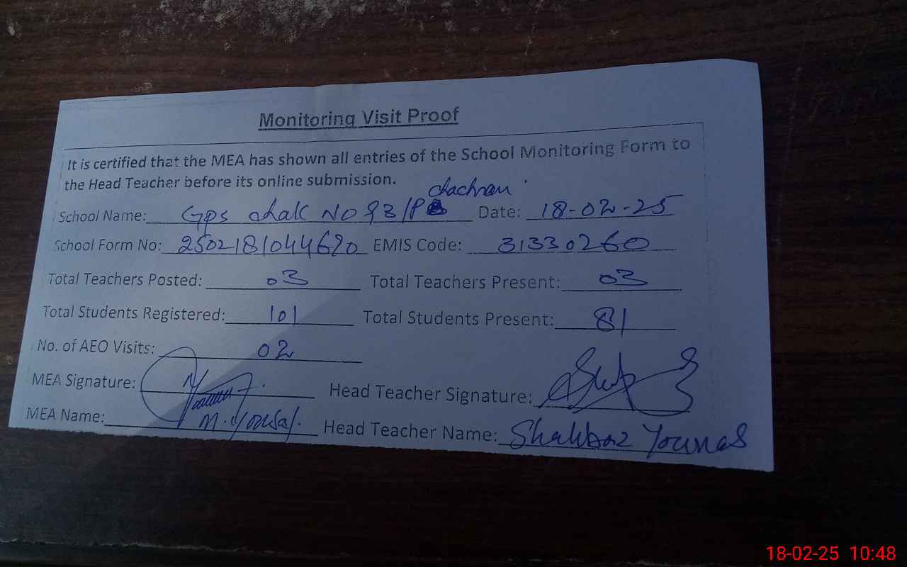 | EMIS Code: 31330260 | Name of School: GPS BASTI CHACHRAN 93/P | |||