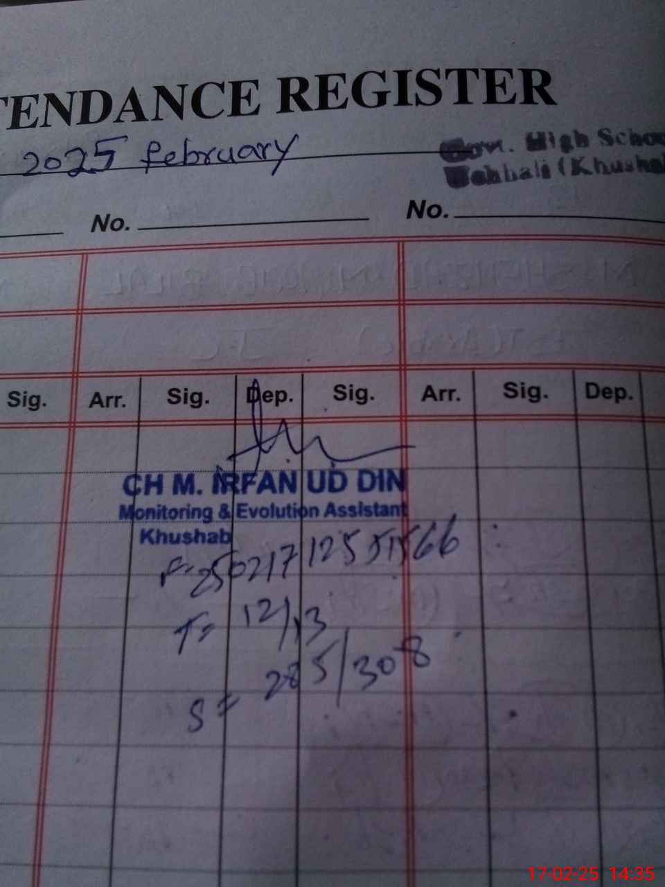 | Name: Am**** Hu**** Designation: (School Headmaster's/Headmistress's) HEADMASTER Phone/Cell Number: 03**** |
