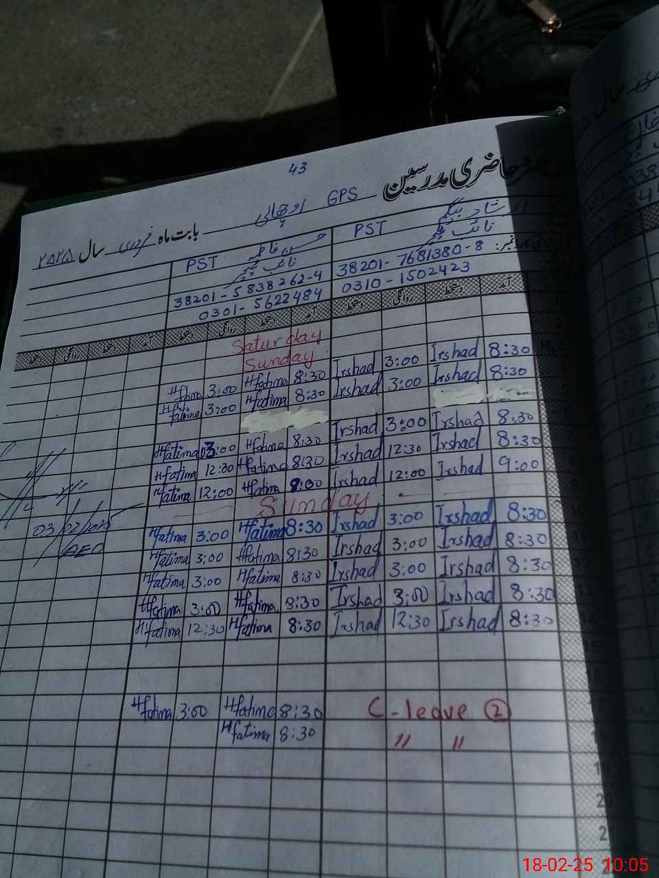 | Leave | Duty | Absent | Maternity | Medical | Ex- Pak |