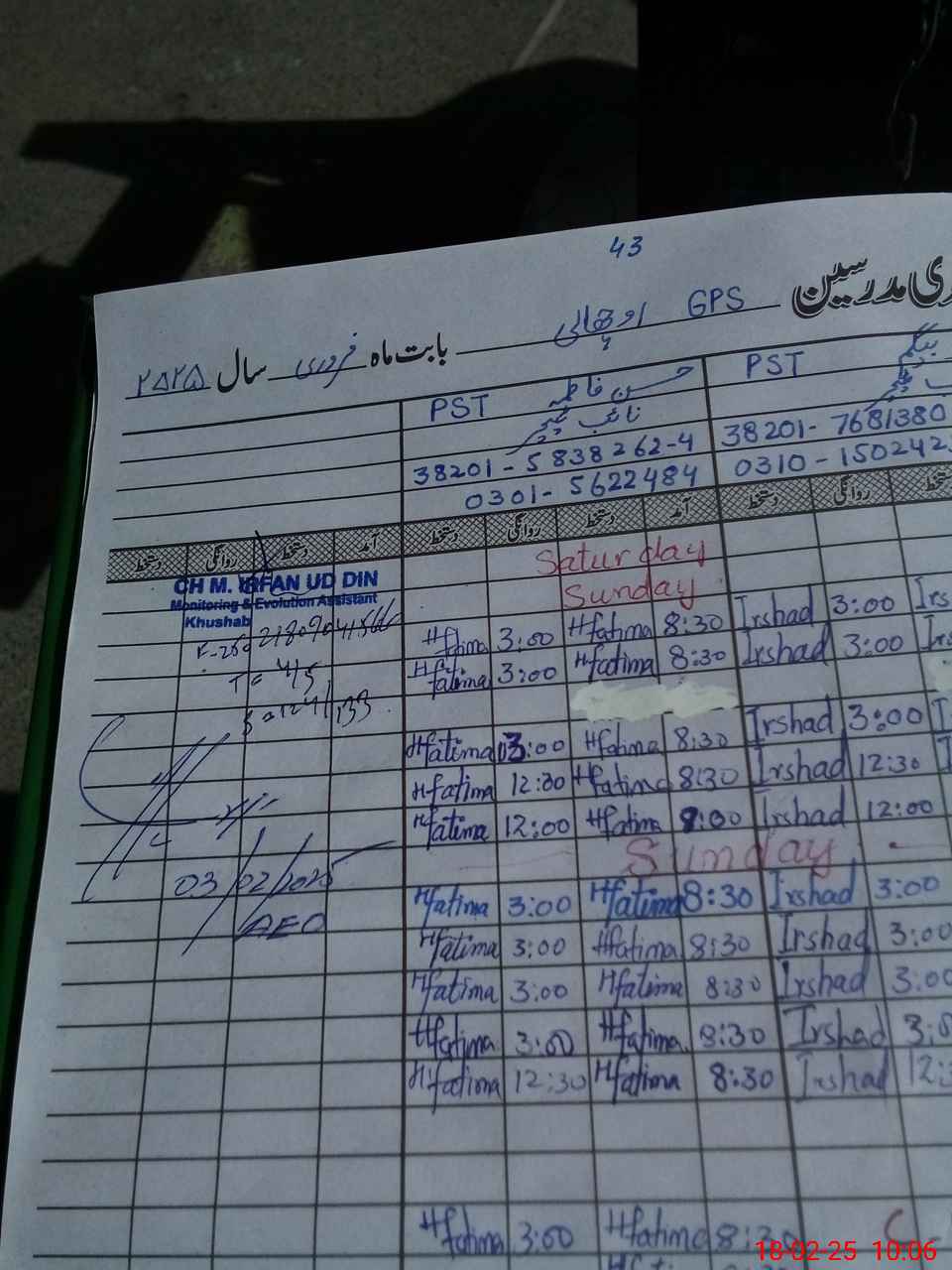 | Name: Ah**** Na**** Designation: (School Headmaster's/Headmistress's) PST Phone/Cell Number: 03**** |
