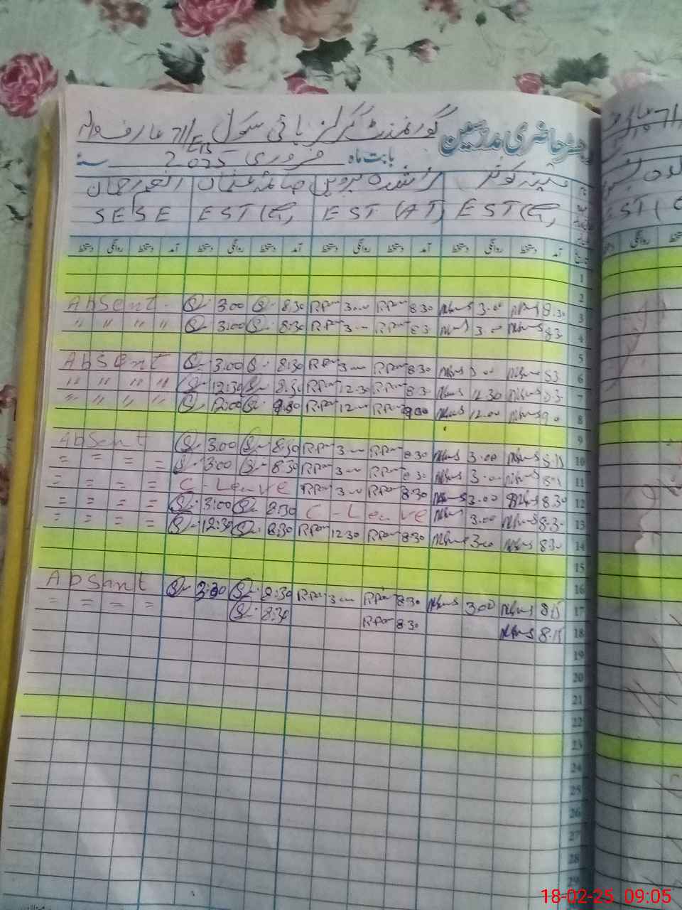 | CNIC | Full Name | Designation | R/C | Absence During Last Calender Month |