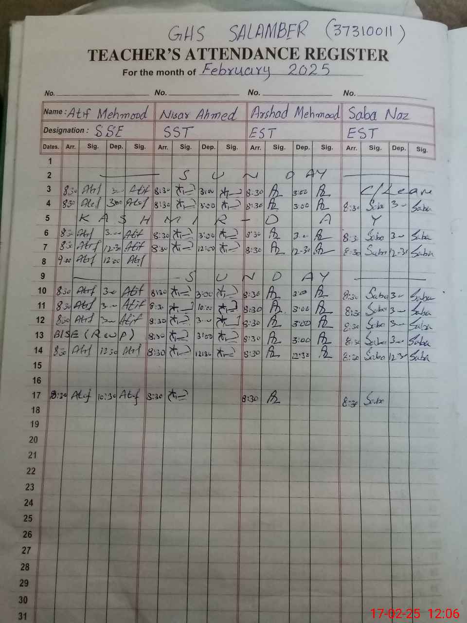 | CNIC | Full Name | Designation | R/C | Absence During Last Calender Month |