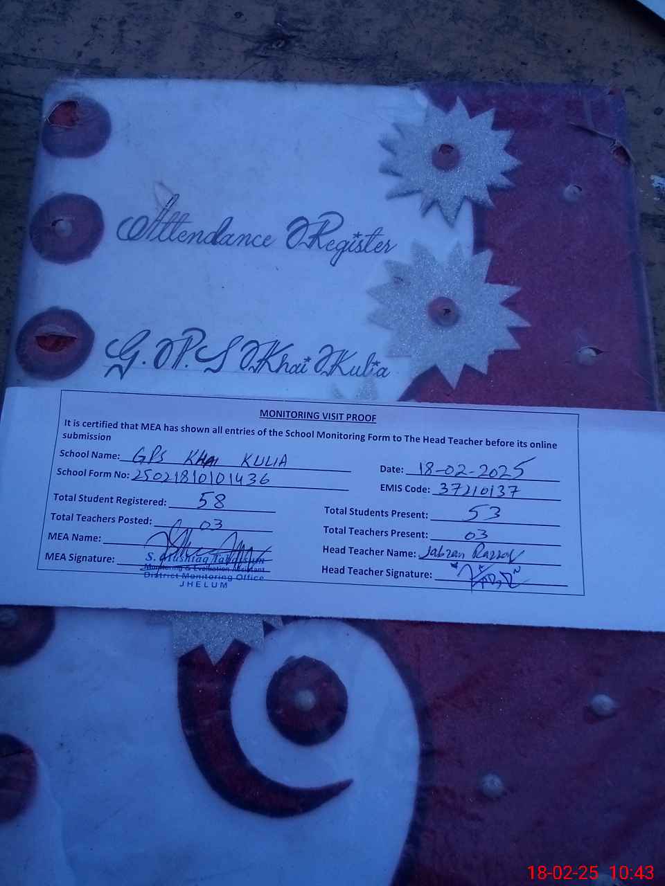 | EMIS Code: 37210137 | Name of School: GPS KHAI KULIA | |||