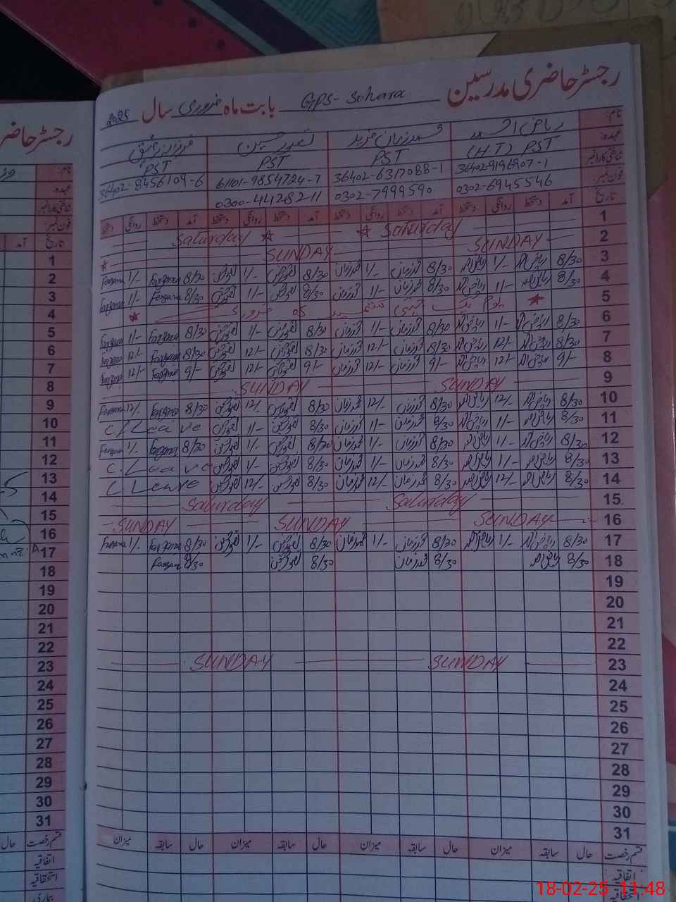 | Name: RI**** AH**** Designation: (School Headmaster's/Headmistress's) PST Phone/Cell Number: 03**** |